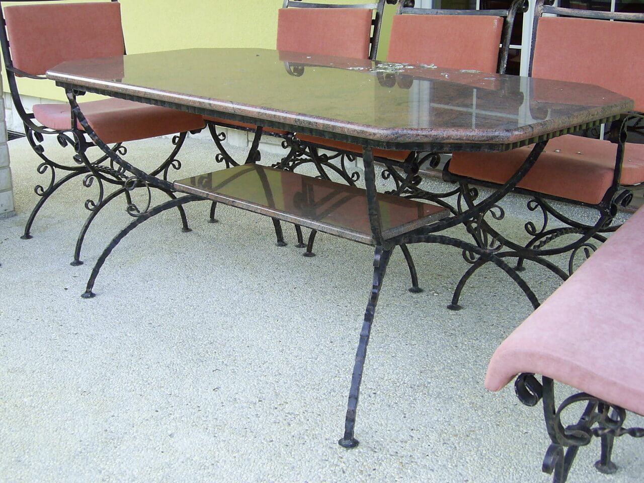 Auch Schmiedmöbel werden mit den gleichen Verfahren wie schmiedeeisernen Zäune geschütz auf Wunsch des Kunden, wie zum Beispiel Feuerverzinkung, mehrschichtige Beschichtung und anderen zusätzlichen Schutz.